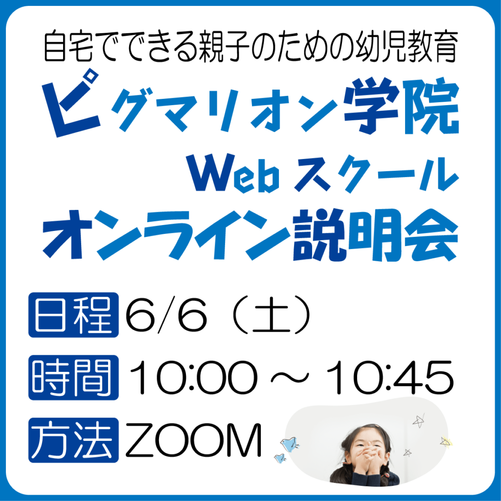 ピグマリオン学院を検討されている方へオンライン説明会を行います。ピグマリオン学院の内容や受講方法、学習の進め方等についてお話しますので、WEBスクールや通室を検討されている方以外にピグマリオンについて知りたい方もご参加可能です。また、ご家庭の教育で役立つ情報として毎回テーマを変えてワンポイントアドバイスを実施しています。