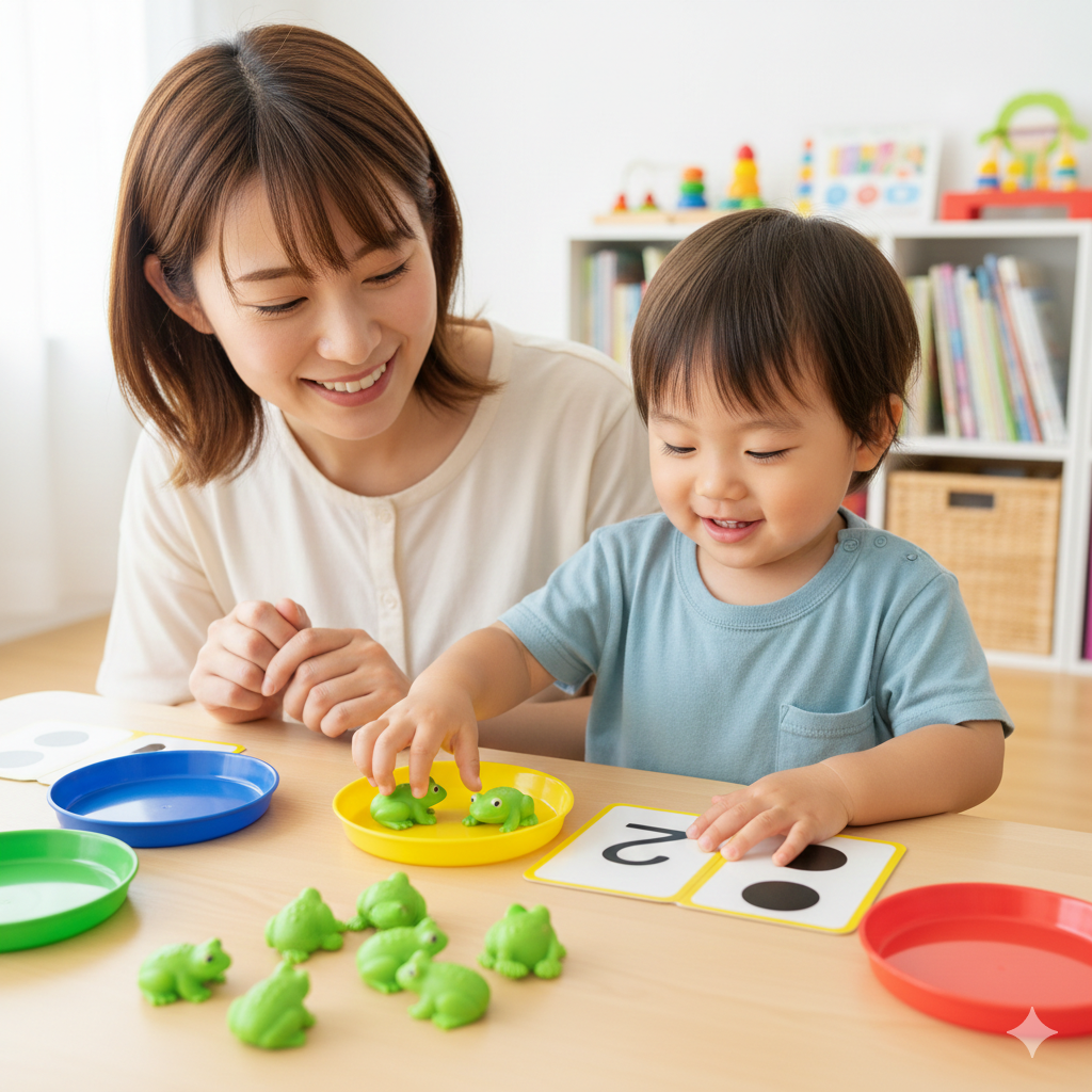 今回は、数唱の代わりに教えるべき「量感(りょうかん)」の正体と、カエルやドットカードを使ってご家庭でできる「最強の算数レッスン」について詳しく解説します。