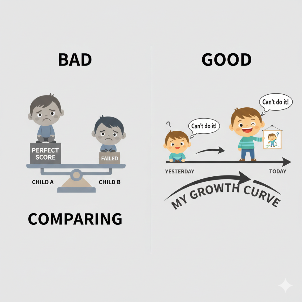 見るべきは、他所の天才児ではありません。 「昨日の我が子」です。